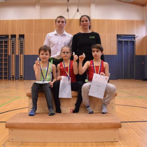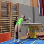 Nach nicht einmal 2 Monaten Training bestreitet sie ihren ersten Wettkampf. Sie wählte die Kinderstufen 2 Übungen. Diese sind etwas leichter aber auch vom Ausgangswert je 2 Punkte tiefer angesetzt. Trotzdem freut mich deine Leistung und durch deine Aufmerksamkeit im Training kannst du noch viel erreichen! Platz 41. mit 32,85 Punkten.
