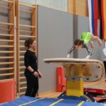 Lotti, auch erst seit 2,5 Monaten im Kunstturnen, bemühte sich so sehr, doch am Sprung hatte sie etwas zu wenig Schwung und kam annähernd perfekt zum Handstand, doch nicht auf die andere Seite. Schade! Auch vom Balken stürzte sie einmal. Platz 43.